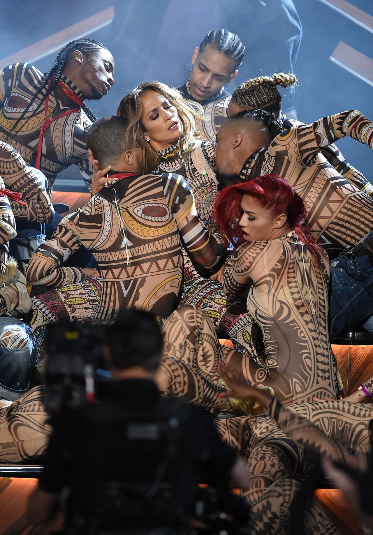 Durante la coreografía que estaba ejecutando como parte del número de entrada de Jennifer Lopez, donde cantó Anaconda y Bit… better have the money , la bailarina dio la vuelta y dejó al descubierto todos sus encantos.