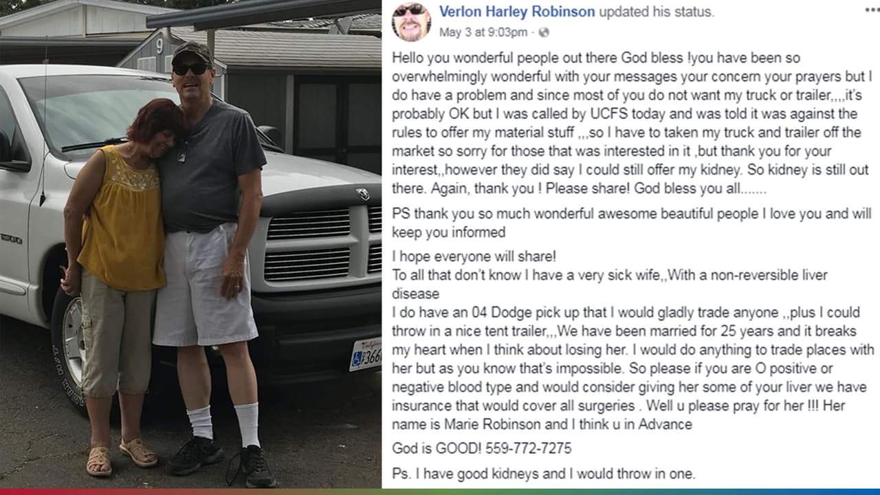Cambia su riñón y su camioneta por un donante de hígado para su esposa