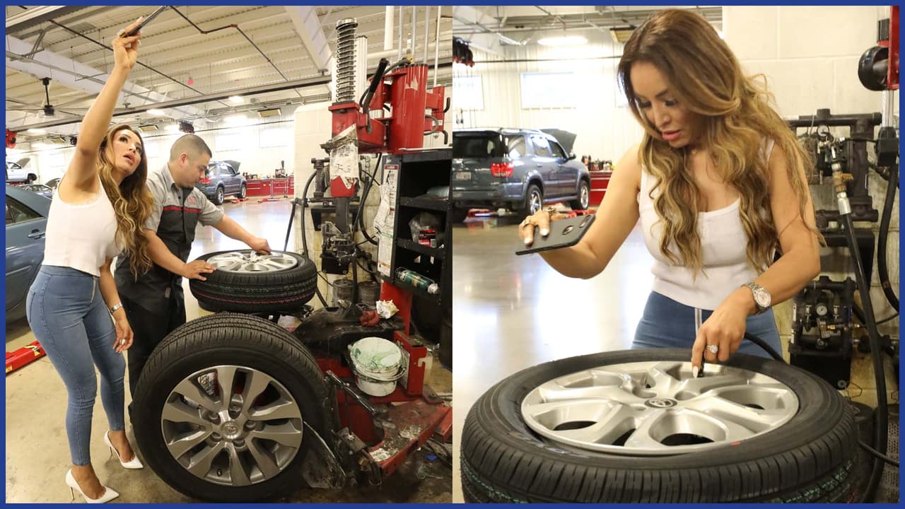 La locutora sufrió un pequeño susto cuando intentaba ponerle aire a una llanta; mira tú mismo lo que sucedió