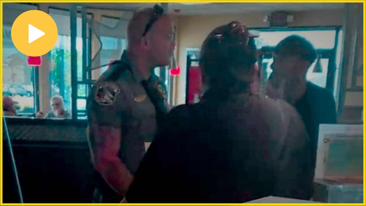 (Video) Cliente malhumorado llama a 911 para que desalojen a indigente y el policía le dio una lección