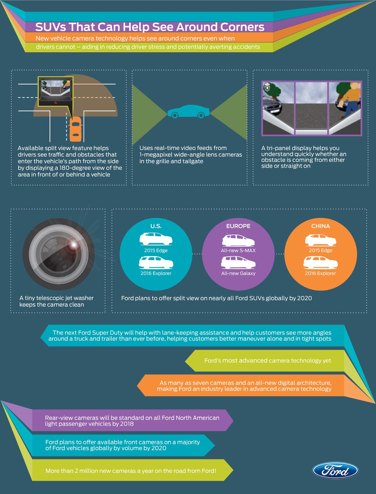 Para el 2018 Ford tiene proyectado implementar cámaras de visión trasera en todos sus vehículos de pasajeros, que se venden en los Estados Unidos; y para 2020 cámaras de visión frontal en todos los vehículos que comercializa a nivel global.
