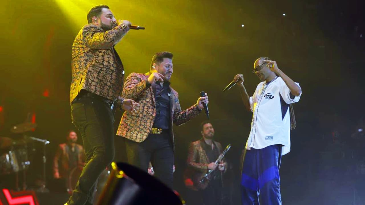 MS y Snoop Doog, al fin juntos en un escenario y hasta con cigarro de marihuana En mayo del 2020, la Banda MS sorprendió al lanzar un dueto con elrapero Snoop Dog, con el tema ‘Qué Mald ición”, el éxito fue mundial y por varias semanas fue Top en las listas de popularidad. Sin embargo, fue hasta el 11 de julio de este año, en el Toyota Center de Ontario, California, cuando por fin el famoso cantante urbano apareció en un show de la MS y lo hizo muy a su manera, al subir al escenario fumando un cigarrillo de mariguana y además de cantar el éxito ‘Qué Maldicion’.