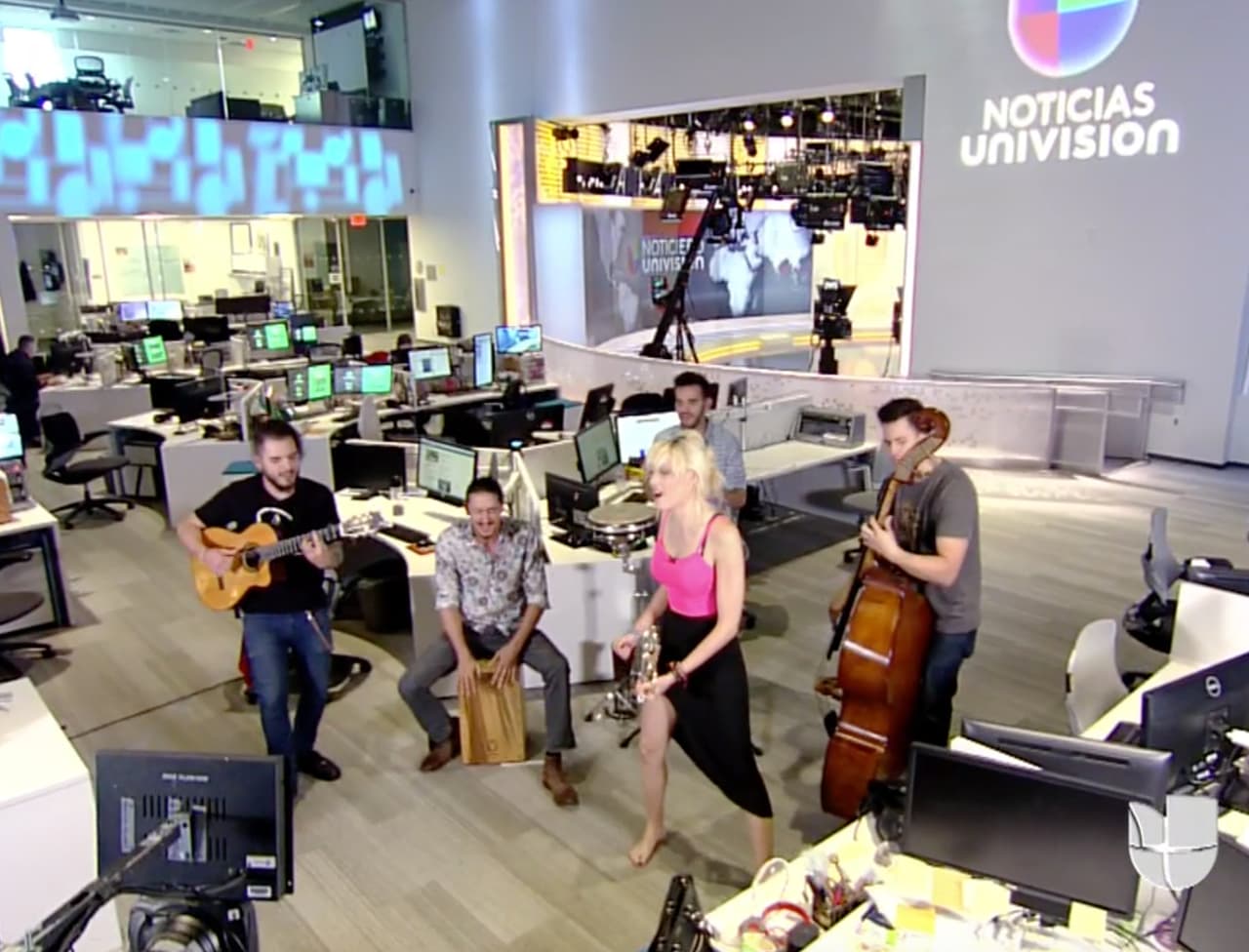 Jenny and the Mexicats tuvieron un mini concierto en la sala de redacción de Univision Noticias. La banda mezcla sonidos del reggae, jazz, folk y más.