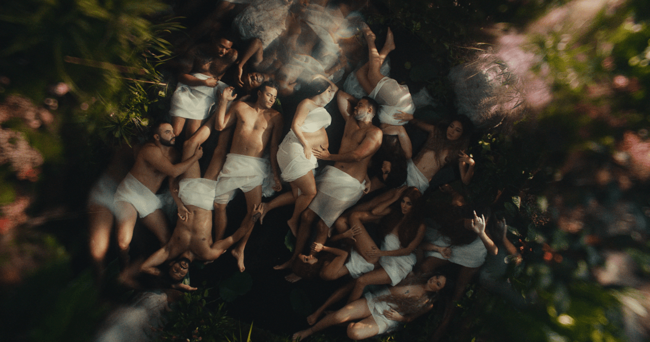 Al final, aparecen varios hombres y mujeres en una especie de selva, recostados en el piso, sin ropa, y pegados los unos a los otros.