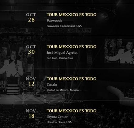 Unas semanas antes de su muerte, el Divo de Juárez había anunciado a través de su página oficial que en el mes de noviembre daría un concierto gratis en el Zócalo. Pero la noticia duró poco. Al cabo de unas horas, la fecha desapareció del calendario del Tour Méxxico Es Todo. La fecha era el mismo día en el que Fernández tocará.