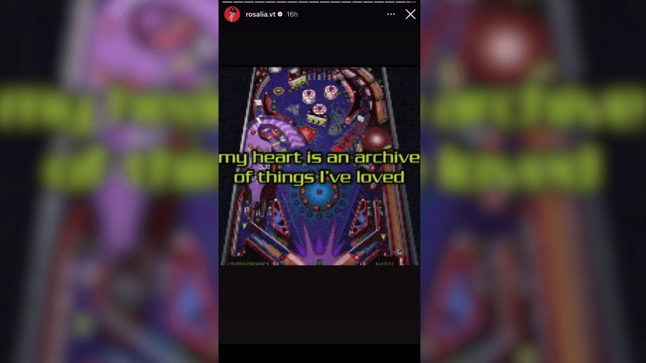 Hace apenas unas horas, Rosalía dejó un enigmático mensaje en sus historias de Instagram, en el que dice "mi corazón es un archivo de cosas que he amado"