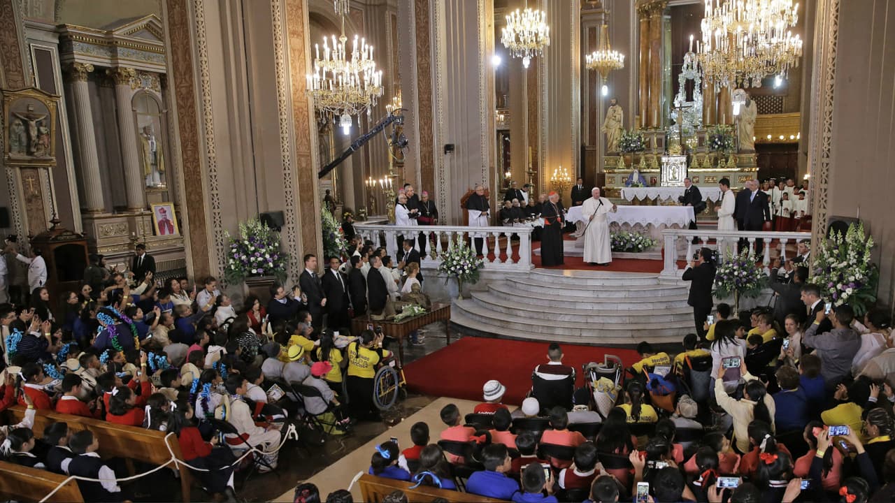 Luego de la misa para religiosos que ofició en el estadio Venustiano Carranza, el Papa Francisco visitó la Catedral de Morelia para dar un mensaje a niños y niñas catequistas.