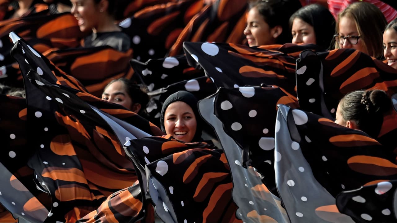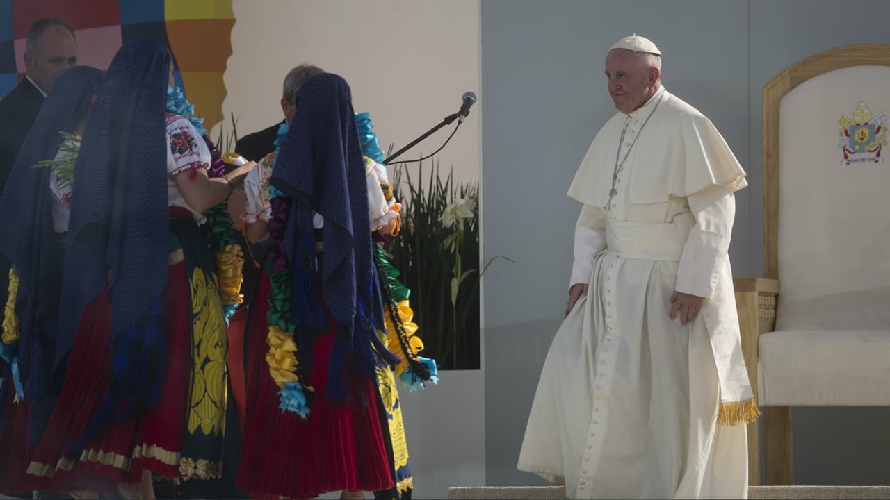 Al finalizar us mensaje, el Papa disfrutó de un espectáculo que representó el vuelo de la mariposa monarca y diversos bailables símbolos del Estado.