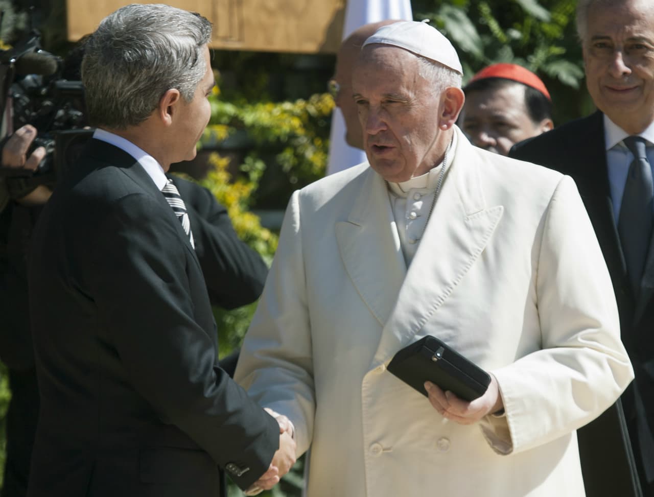 En las puertas del recinto religioso le esperaba el Jefe de Gobierno de la Ciudad de México, Miguel Ángel Mancera, quien le hizo entrega de las llaves de la Ciudad y lo declaró 'Huésped Distinguido'.