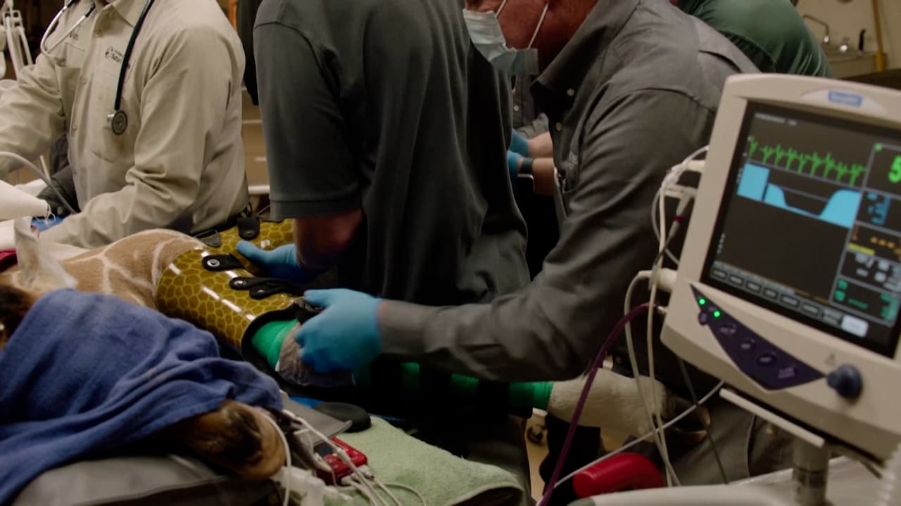 La jirafa Msituni, de tres meses, tuvo que recibir aparatos ortopédicos para corregir un problema en sus patas delanteras. Para ello, el Zoológico de San Diego buscó a un afamado médico. Más noticias en Univision.