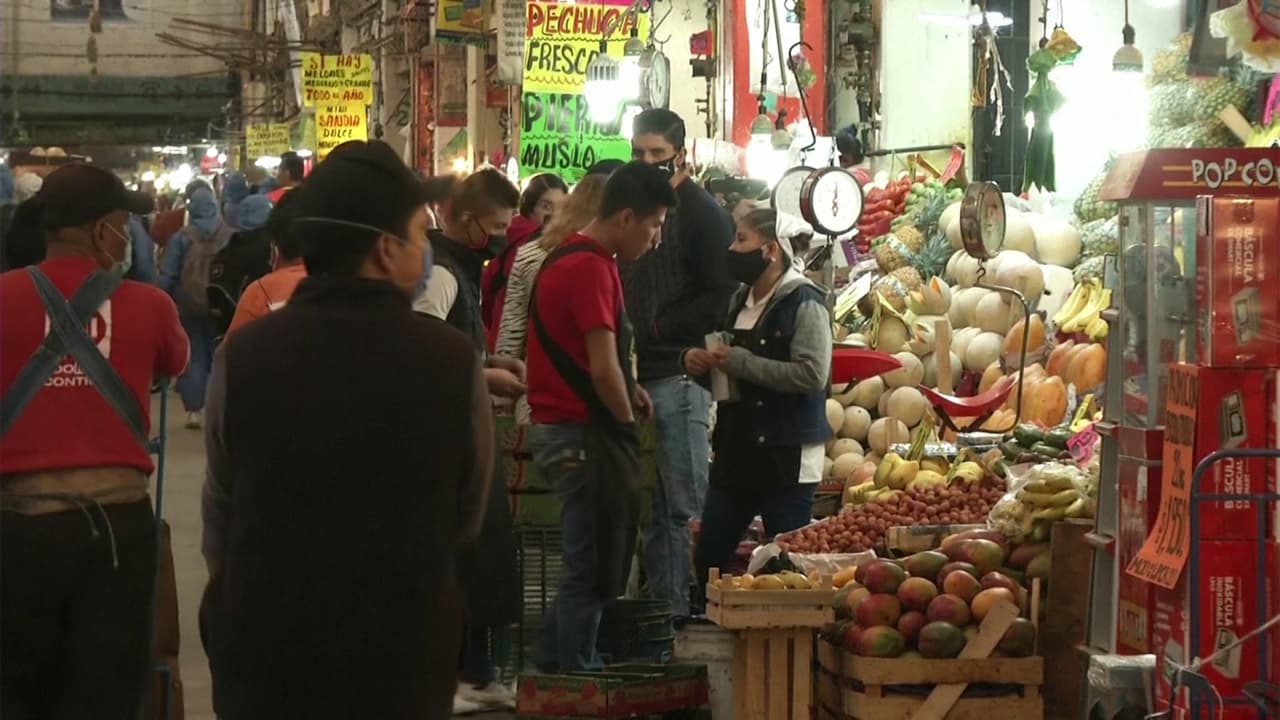 Abarrotan un mercado de alimentos de la ciudad de México a pesar de la pandemia