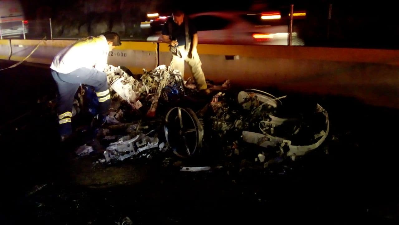 Por el impacto, el biplaza, manejado a exceso de velocidad, quedó destrozado y reducido a cenizas. A bordo de él iban tres personas (el auto tiene capacidad solo para dos pasajeros) de las cuales dos eran mujeres de origen colombiano quienes terminaron con quemaduras de segundo grado. Una de ellas falleció un día después en el hospital, mientras que del conductor solo se sabe que huyó del lugar ayudado por sus guardaespaldas.