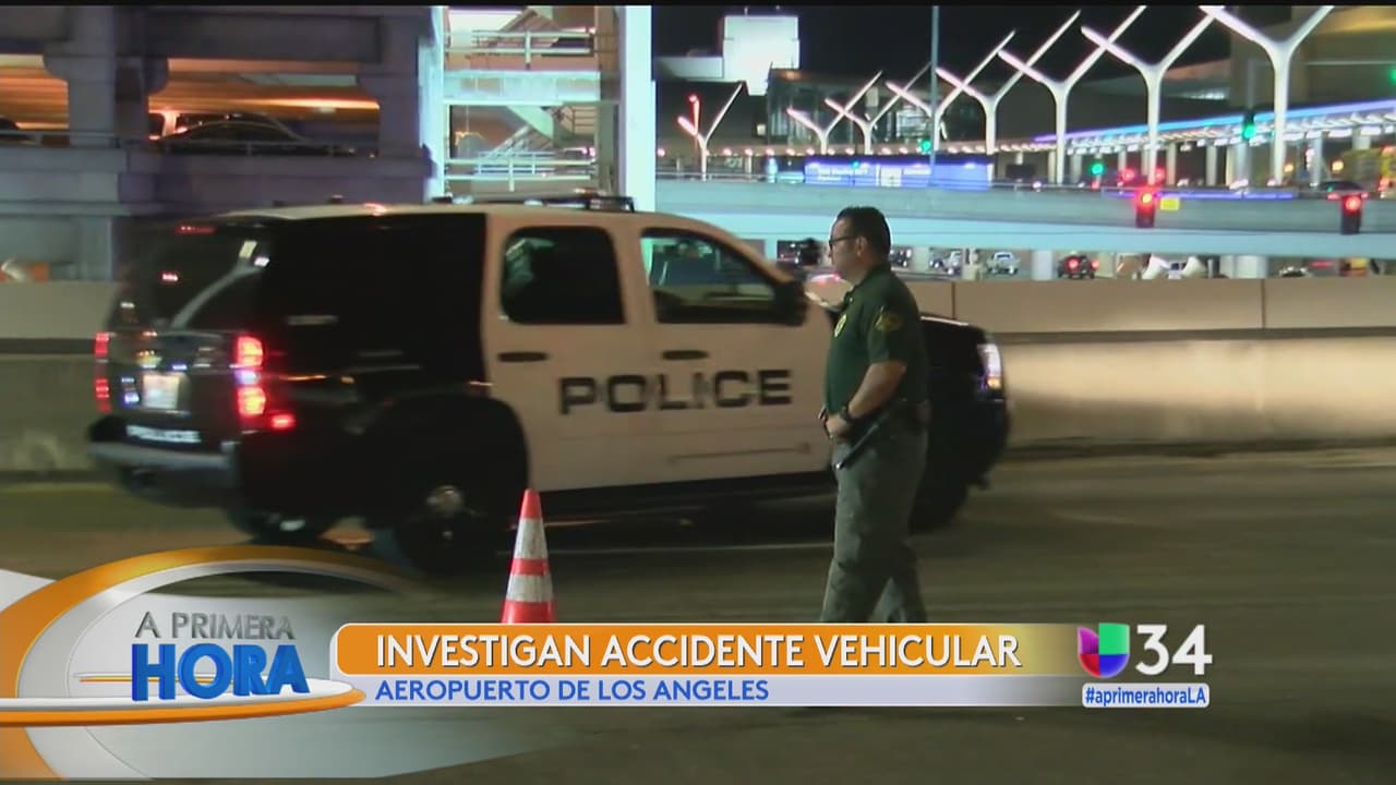 La policía investiga un accidente en el aeropuerto internacional de Los Ángeles que presuntamente ocurrió cuando el conductor perdió el control de su auto.