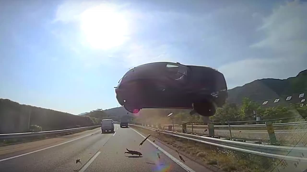Mazda3 causa accidente mortal al aterrizar en el parabrisas de un autobus de turismo