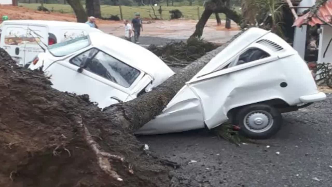Una fuerte tormenta en Rio Negrinho, al norte de Santa Catarina en Brasil, tumbó muchos árboles. Uno de estos árboles cayó sobre un Volkswagen Kombi y este clásico sobrevivió al impacto.
