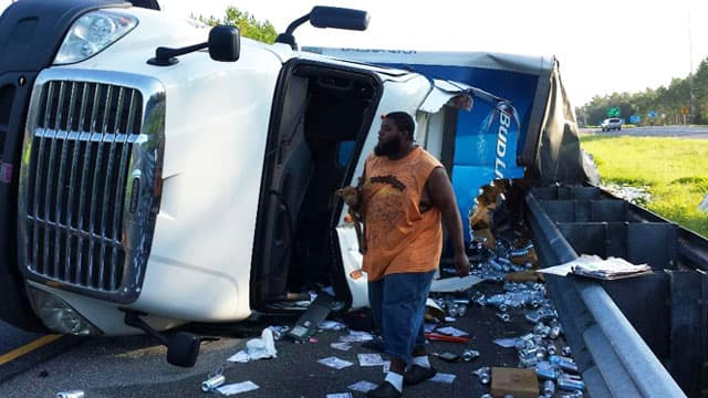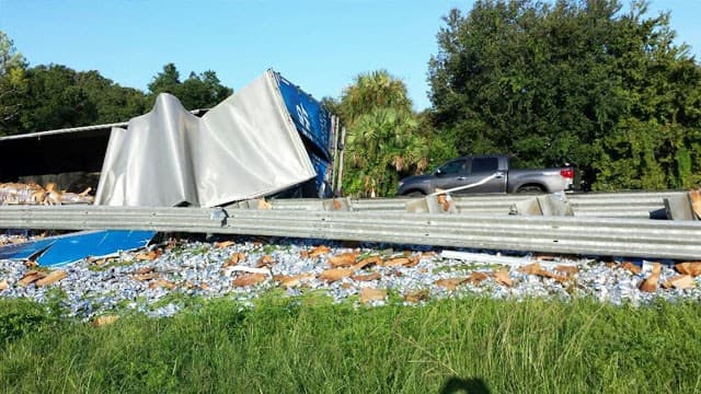 Un camión lleno de cerveza se volcó esta mañana en la I-75 a la altura de Tampa esparciendo cientos de latas en el pavimento.