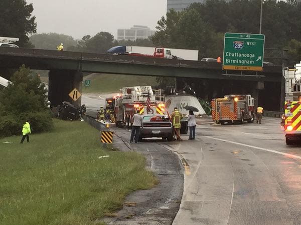 Equipos de limpieza trabajaron contra reloj para habilitar completamente la carretera Ga. 400 y la interestatal 285 luego de que dos camiones de remolques se volcaran en la vía dirección norte en Sandy Springs.