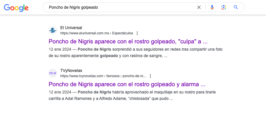 Mientras que respecto a la fotografía incluida en los otros posts, encontramos gracias a una búsqueda con palabras clave en Google que en realidad se trata de maquillaje que usó para grabar un comercial, en el que hacía de boxeador y tenía el rostro golpeado. Varios medios mexicanos lo aclararon cuando el actor publicó inicialmente las imágenes bromeando con que había sido atacado, en enero de 2024.