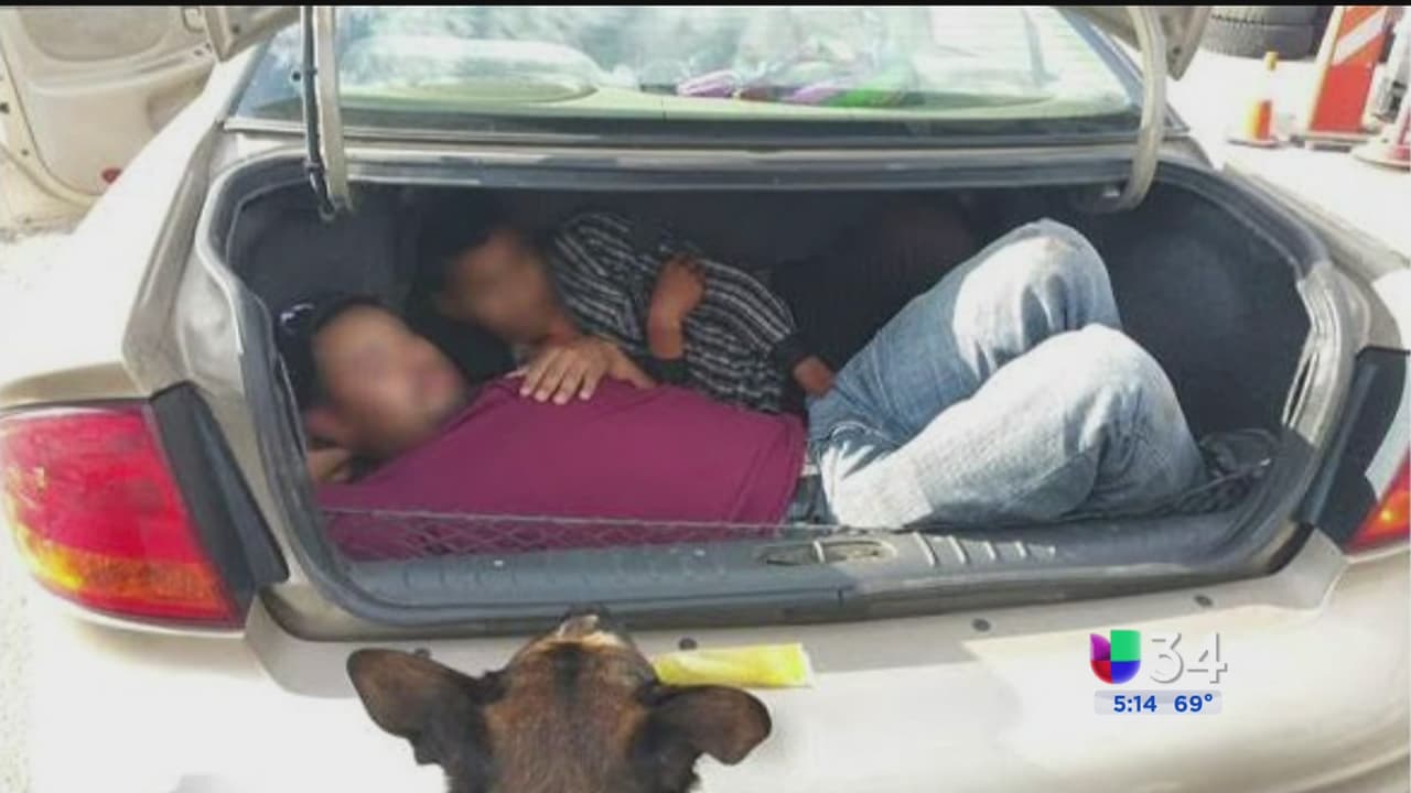 Inmigrantes indocumentados cruzan la frontera escondidos en una cajuela