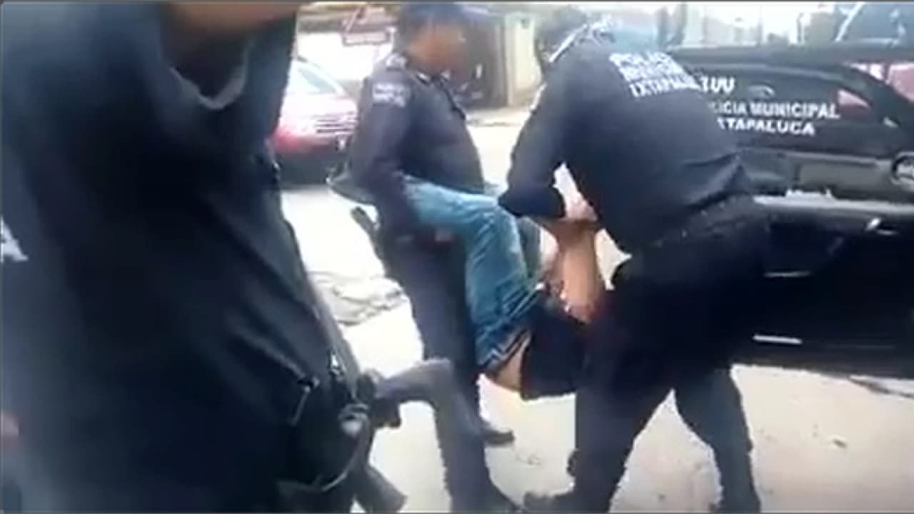 “¡Mira cómo lo traen! Estaba sentado aquí, nomás porque no trae cubrebocas”, reclama una mujer en la grabación. “Él estaba tranquilo, ustedes lo golpearon (…) ¿Por qué lo tratan así?”, les pregunta.
