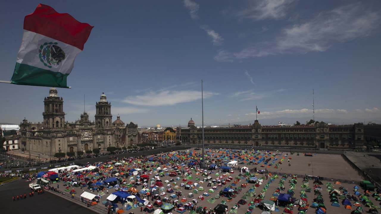 Al llegar al Zócalo fueron contenidos por agentes de la policía en las calles que circundan la plaza, pero casi 30 minutos después los agentes los dejaron pasar a la parte vacía del Zócalo para que lo ocuparan y donde dijeron que iban a instalar más casas de campañas y donde permanecerían hasta la renuncia del presidente mexicano, quien llegó al poder el 1 de diciembre de 2018.