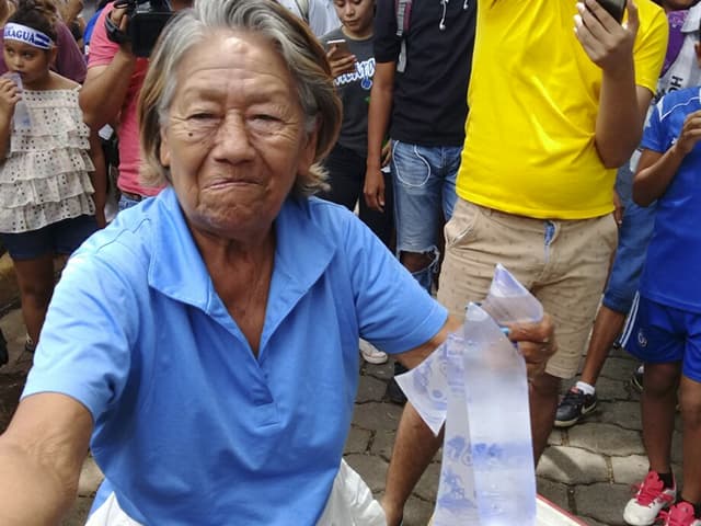Miriam del Socorro Matus Alemán es conocida como “doña Coquito”. Es una humilde vendedora de agua que se volvió famosa cuando regaló su producto a manifestantes sedientos durante una marcha. Incluso, el cantautor más importante de Nicaragua, Carlos Mejía Godoy, le compuso una canción. La anciana de 72 años comenzó a participar en las marchas y este domingo 30 de septiembre fue violentamente apresada por antimotines.