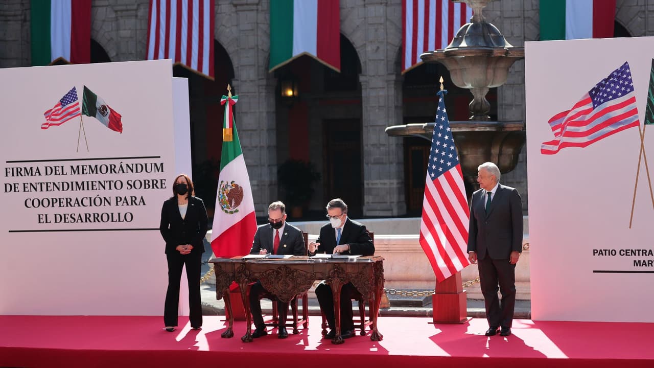 Kamala Harris y AMLO encabezaron el acto donde se firmó el memorándum con el que se comprometieron a compartir información en materia migratoria. Tras su primera visita a México, la vicepresidenta publicó en Twitter que ambas economías "están atadas" y que "dependen una de otra".