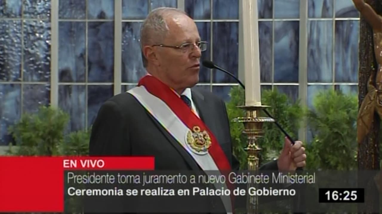 "Los últimos 30 días han sido, probablemente, inéditos en nuestra vida política. Hoy vivimos momentos de crispación, pero debemos apostar por el entendimiento para devolverle la estabilidad a nuestro país", dijo Kuczynski luego de la ceremonia de juramentación de sus nuevos ministros.
