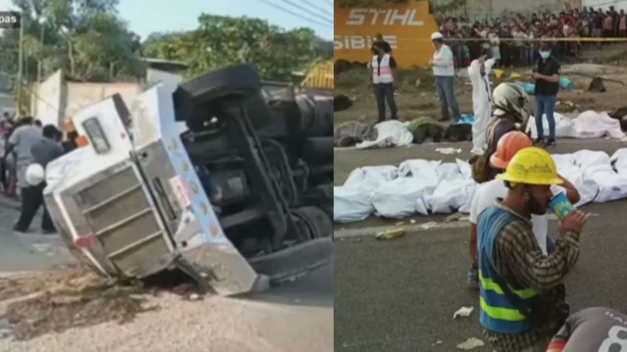 Al menos 55 personas fallecieron y otras 105 resultaron heridas o lesionadas después de que un tráiler perdiera el control en el estado sureño de Chiapas. Mira también: Las primeras imágenes tras el mortal accidente que dejó más de 50 migrantes muertos en el sur de México.
