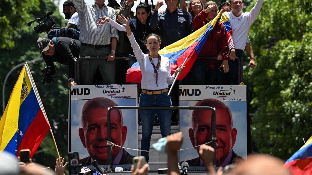 Ante miles de seguidores congregados en la capital venezolana para protestar por los cuestionados comicios, Machado dijo que la oposición mantendrá su exigencia de poner fin al gobierno de Maduro.