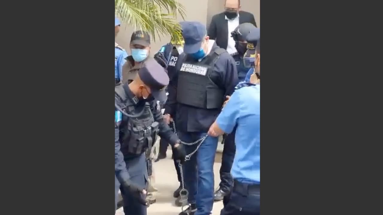 El que fuera aliado de Estados Unidos en la guerra contra el narcotráfico, fue llevado encadenado, atado de pies y manos, en una caravana de vehículos blindados que lo transportaron a un cuartel de las Fuerzas Especiales en las afueras de la capital.