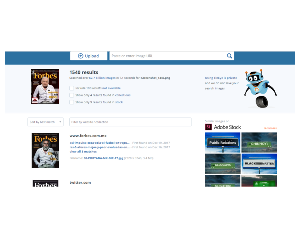 Búsqueda inversa de imágenes en TinEye. 4 de octubre de 2023.