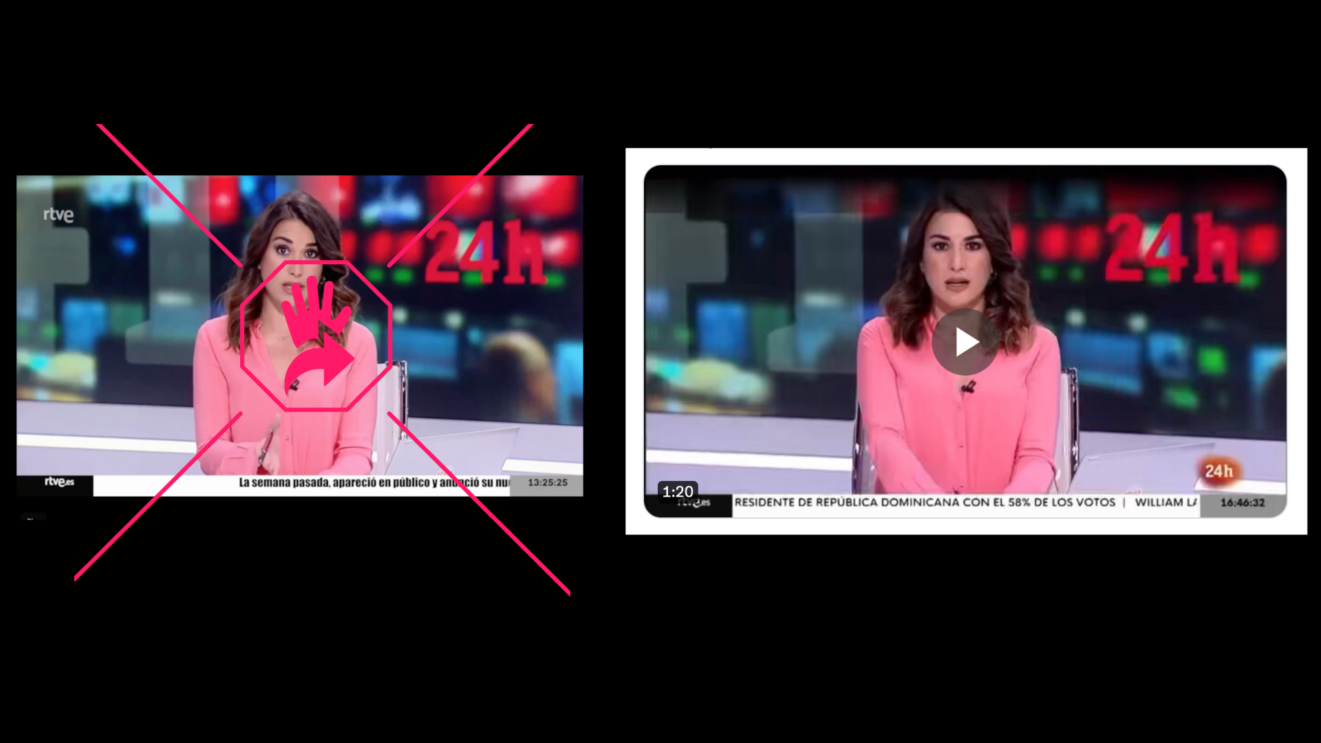 Sin embargo, el contenido del video original no tenía nada que ver con lo que se promociona en el clip manipulado analizado. En realidad, la presentadora hablaba sobre el Día Mundial de las Abejas y la labor de Manos Unidas ONGD en apoyo a las apicultoras en Nicaragua. Otra de las diferencias que encontramos es que la hora se mostraba dinámicamente, avanzando segundo a segundo en la esquina inferior derecha en la grabación original, mientras que en el clip manipulado, la hora aparece estática.