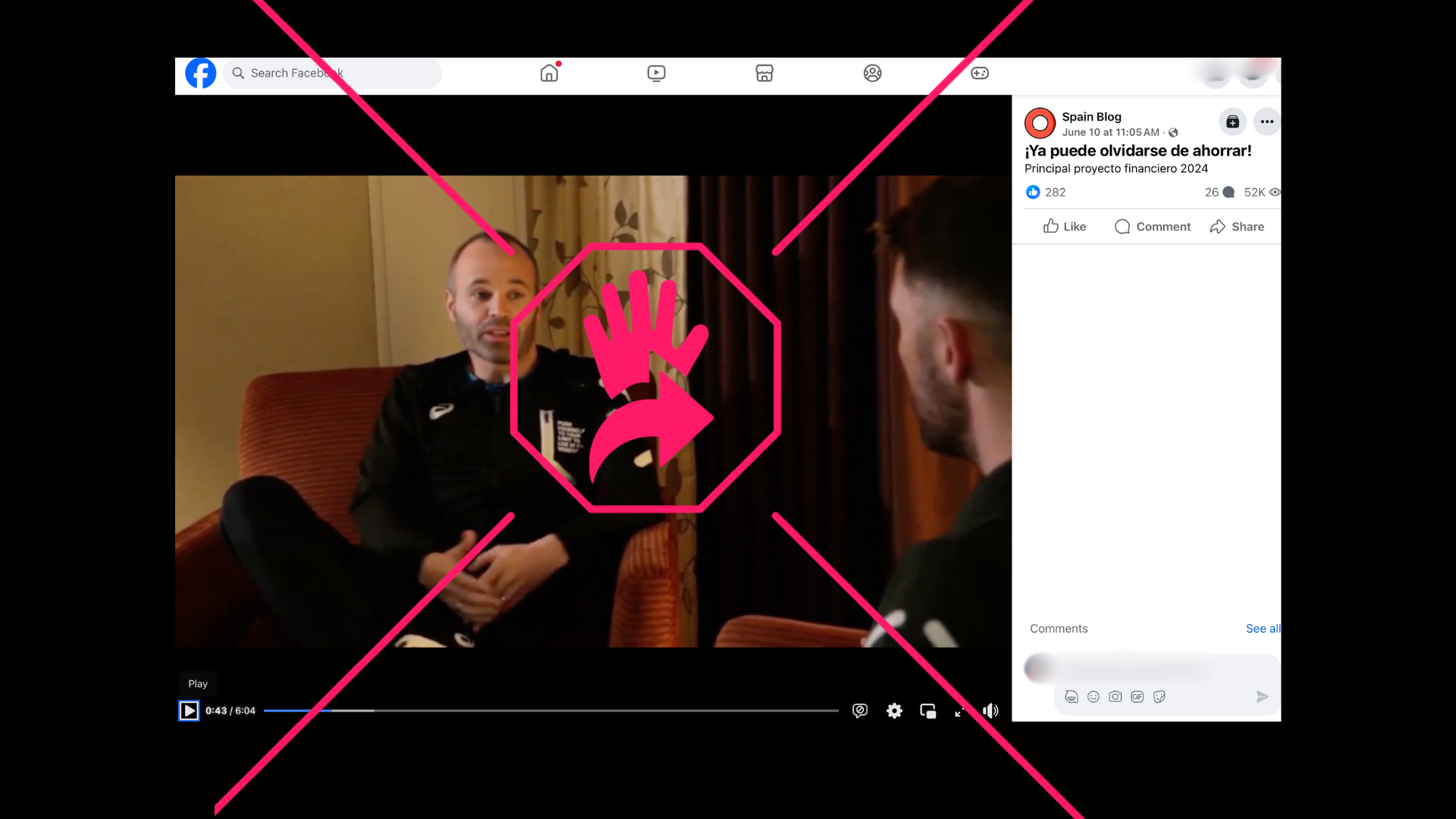 Andrés Iniesta, exmediocampista del FC Barcelona y de la Selección Española de Fútbol, es mencionado en lo que parece ser un segmento de noticias compartido en Facebook que afirma que el futbolista “asustó al gobierno y a los grandes bancos” al hablar de una oportunidad de inversión “secreta” con la que las personas podrían generar importantes ingresos desde el primer día. Sin embargo, el propio equipo de comunicaciones del español calificó la publicación como falsa. Aunque las imágenes son reales, en elDetector comprobamos que el audio fue manipulado.