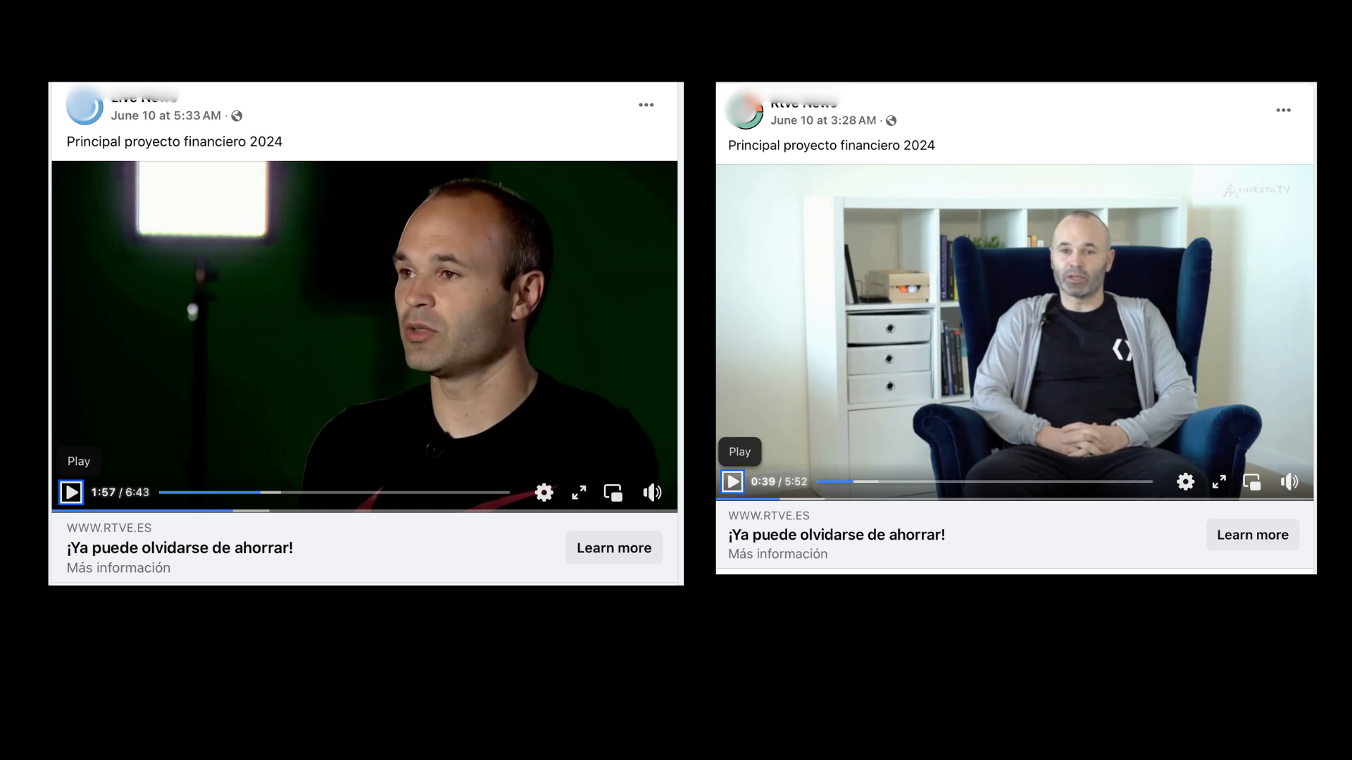“Desde el primer día, usted puede esperar ingresos de hasta 5,400 euros” (5,776.52 dólares) a través de un supuesto “programa informático [que] negocia acciones”, dice el audio del video en el que se muestra a Iniesta sentado junto con el exfutbolista David Villa, tras haber sido presentado en lo que parece un segmento del canal 24 horas de RTVE, empresa pública española de medios de comunicación.