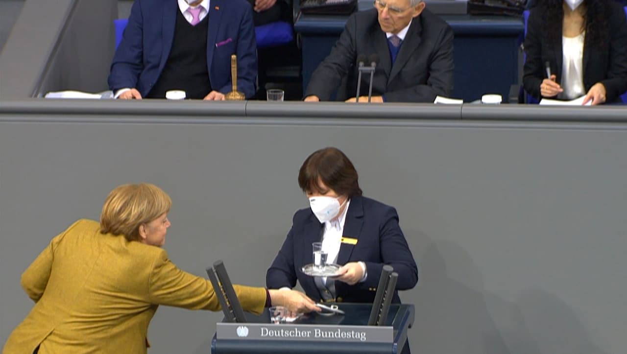 Angela Merkel olvida su mascarilla en plena sesión plenaria y se hace viral