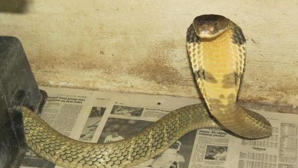Hicieron falta tres oficiales de los servicios para capturar a la enorme cobra, que ofreció resistencia.