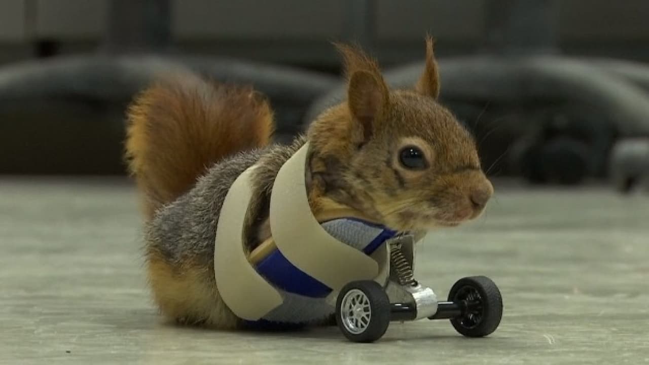 Una ardilla que perdió sus patas delanteras recibe una prótesis