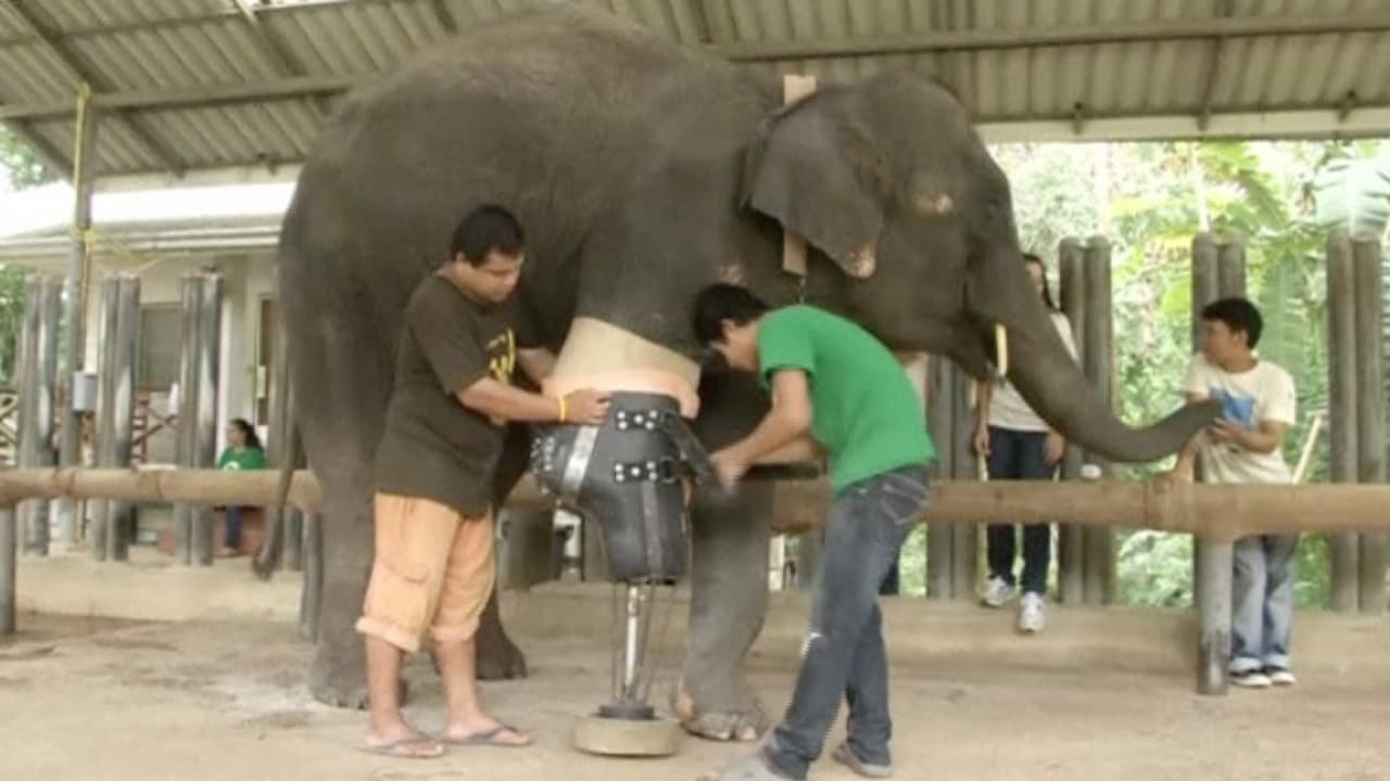 Un elefante amputado ha recibido una nueva pierna artificial luego de pisar una mina en la frontera entre Tailandia Y Myanmar.