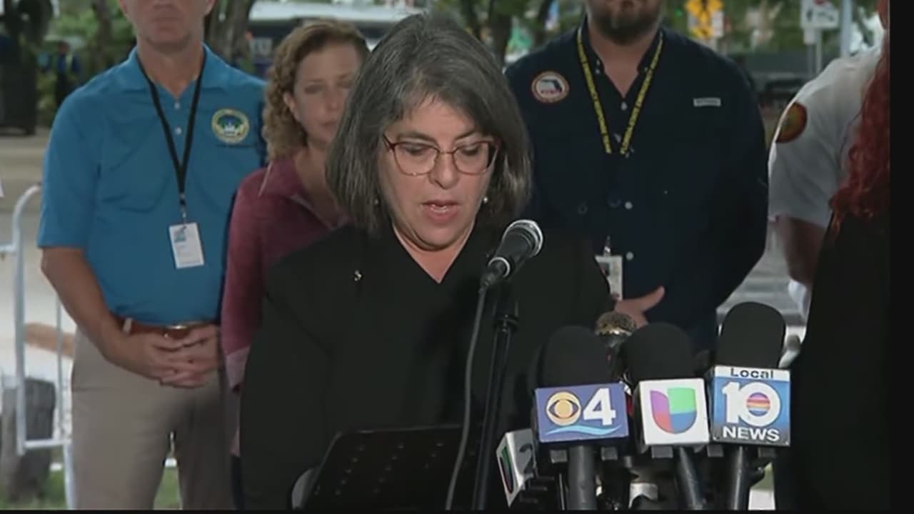 La alcaldesa de Miami-Dade, Daniella Levine Cava, anuncia la hora de la demolición, las recomendaciones para los vecinos y el resultado de la búsqueda de animales. Má noticias aquí.