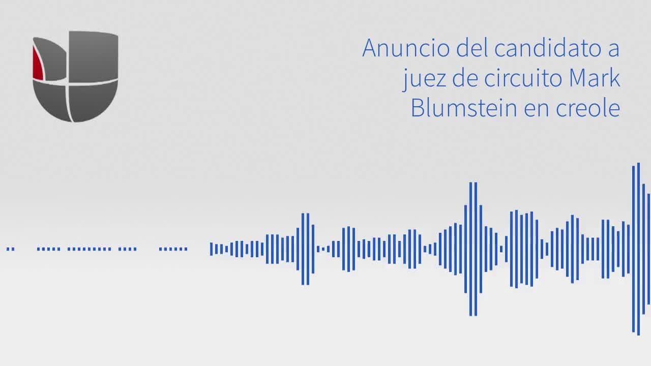 Anuncio del candidato a juez de circuito Mark Blumstein en creole