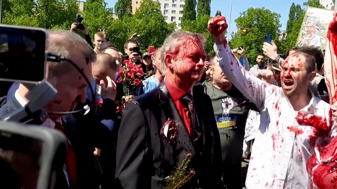El embajador ruso en Polonia, Serguéi Andréyev, fue desafiado por manifestantes antiguerra. Durante la conmemoración del fin de la Segunda Guerra Mundial en Varsovia, le lanzaron pintura roja. Sigue las últimas noticias en Univision.