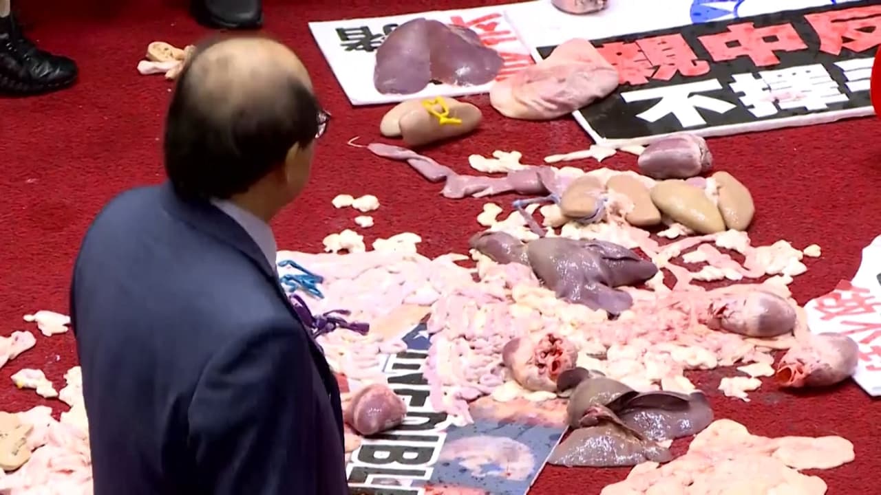 El parlamento taiwanés se convirtió en un campo de batalla el viernes, cuando legisladores lanzaron tripas de cerdo al primer ministro. La oposición no quiere que se permita importar carne de cerdo tratada con ractopaminade, una medida prohibida en China y la Unión Europea, pero legal en EEUU.