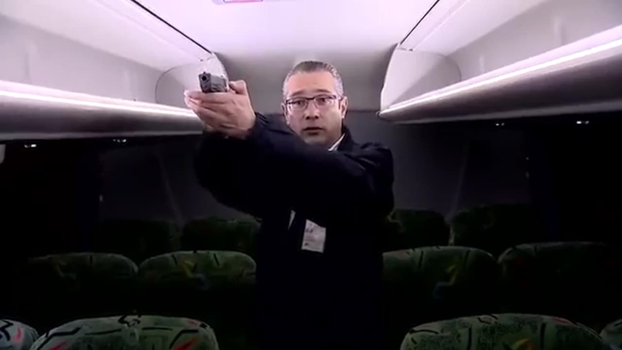 Lo robado lo iban guardando en sus mochilas. Cuando iban terminando de recoger las pertenencias de los pasajeros, desde uno de los asientos traseros se levantó uno de ellos, que le disparó a muerte a uno de los asaltantes e hirió a los otros tres, a quienes finalmente ultimó a tiros cuando corrieron para huir del vehículo. Tomó las mochilas de los cadáveres y las lanzó dentro del autobús para que cada quien recuperara sus pertenencias. Luego, desapareció.