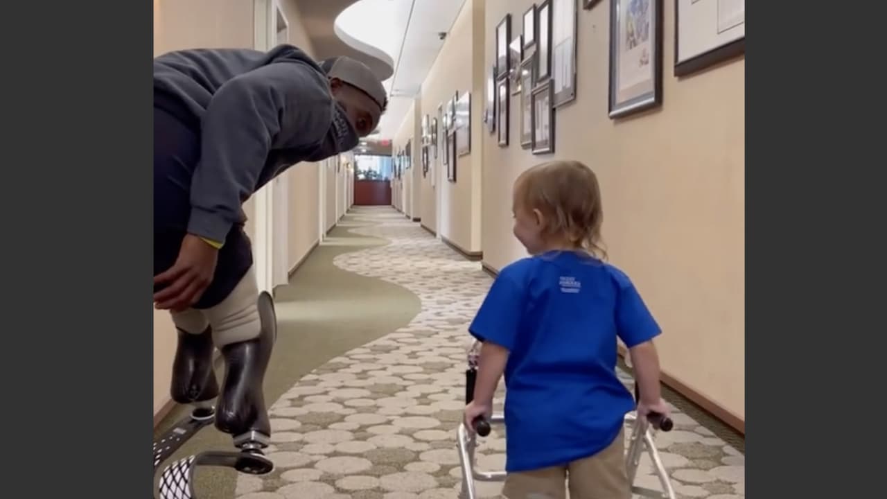 Así anima a caminar un atleta paralímpico a un niño que perdió una pierna en un accidente