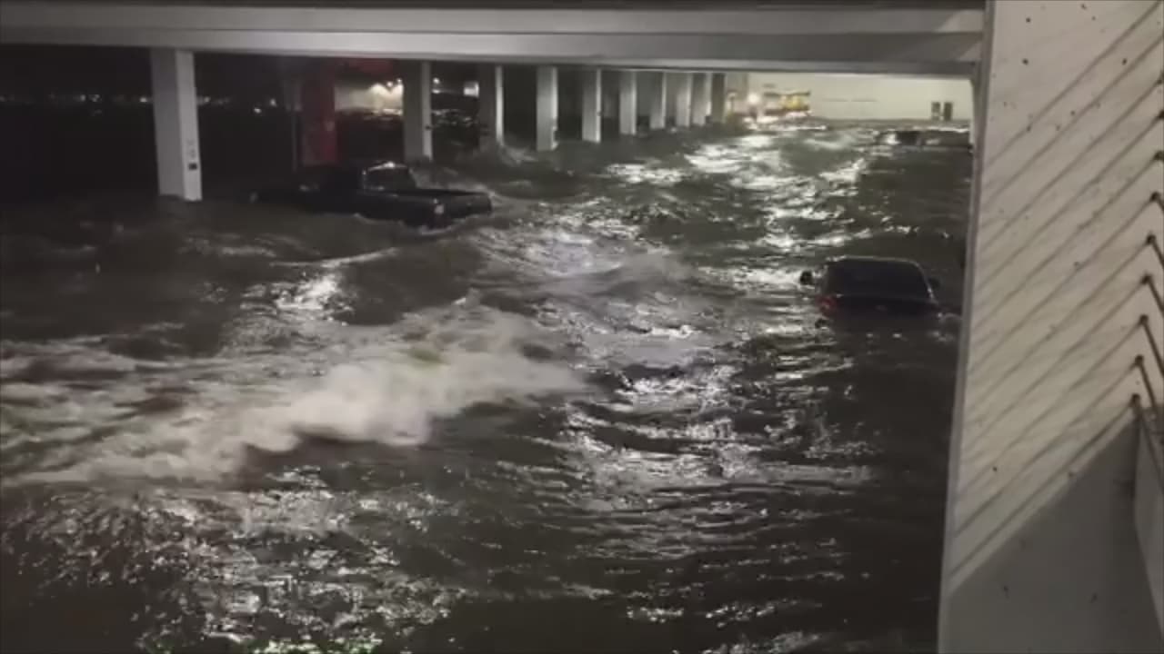 Los videos compartidos en redes sociales muestran a un cliente del Casino Hard Rock Cafe de Biloxi que muestra el nivel del agua que casi cubre los autos que no pudieron salir del sitio previo al paso del huracán Nate.