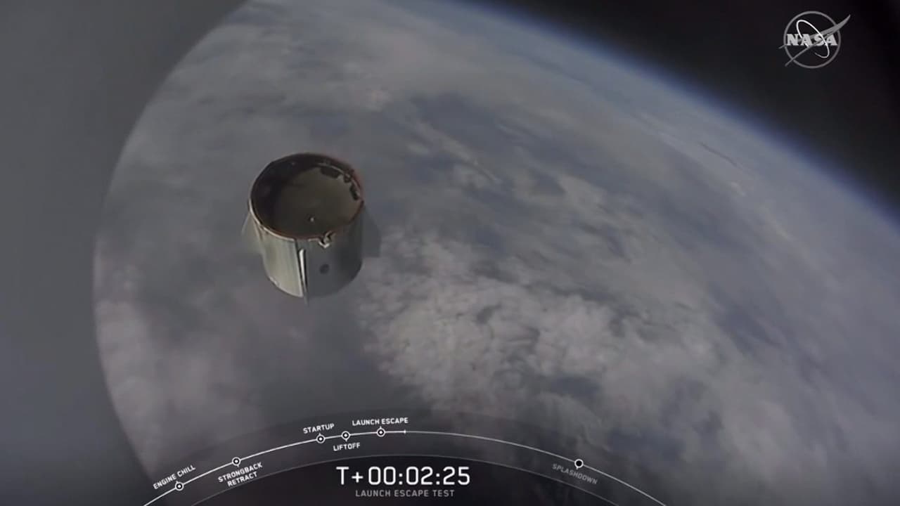 El último experimento de la compañía espacial resultó un éxito, al lograr separar la cápsula con pasajeros de los reactores y hacer que aterrizara al mar.