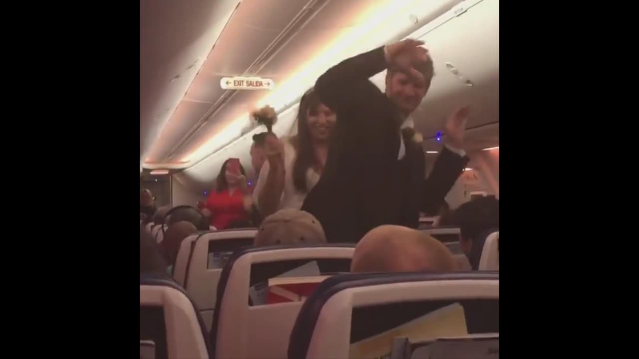 Renee y Michael abordaron el vuelo vestidos para la ocasión y 45 minutos antes del aterrizaje, el piloto ofició la celebración.