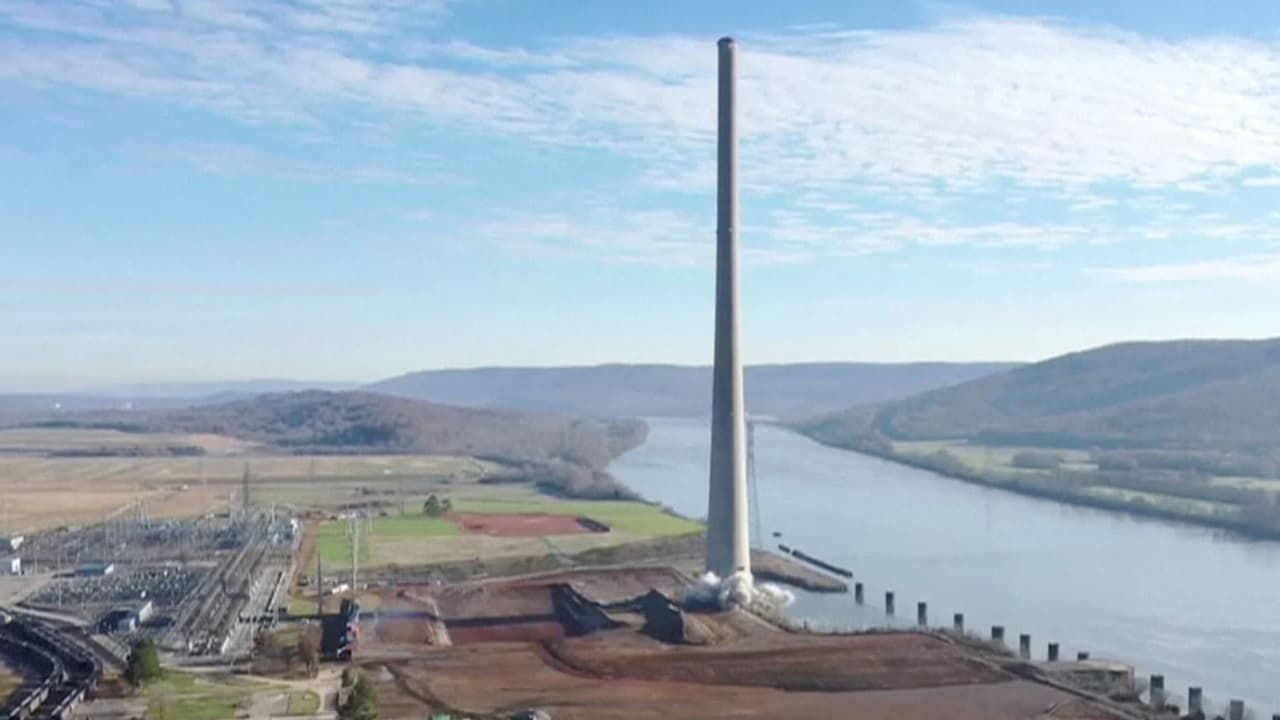 Así fue la explosión controlada que derribó una de las chimeneas más grandes de EEUU