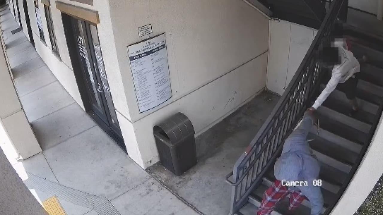 Así le robaron el bolso a esta mujer arrastrándola a ella y a su hija por las escaleras